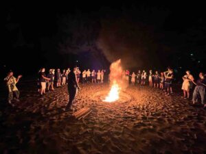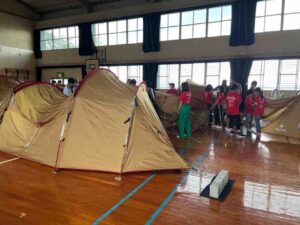 最終日は、この2日間を通して感じたこと、目標、保護者やお世話になった地域住民の皆さんに伝えたいことを中心に、志賀島小学校の屋上からグラウンドに向かって大きな声で主張してもらいました。